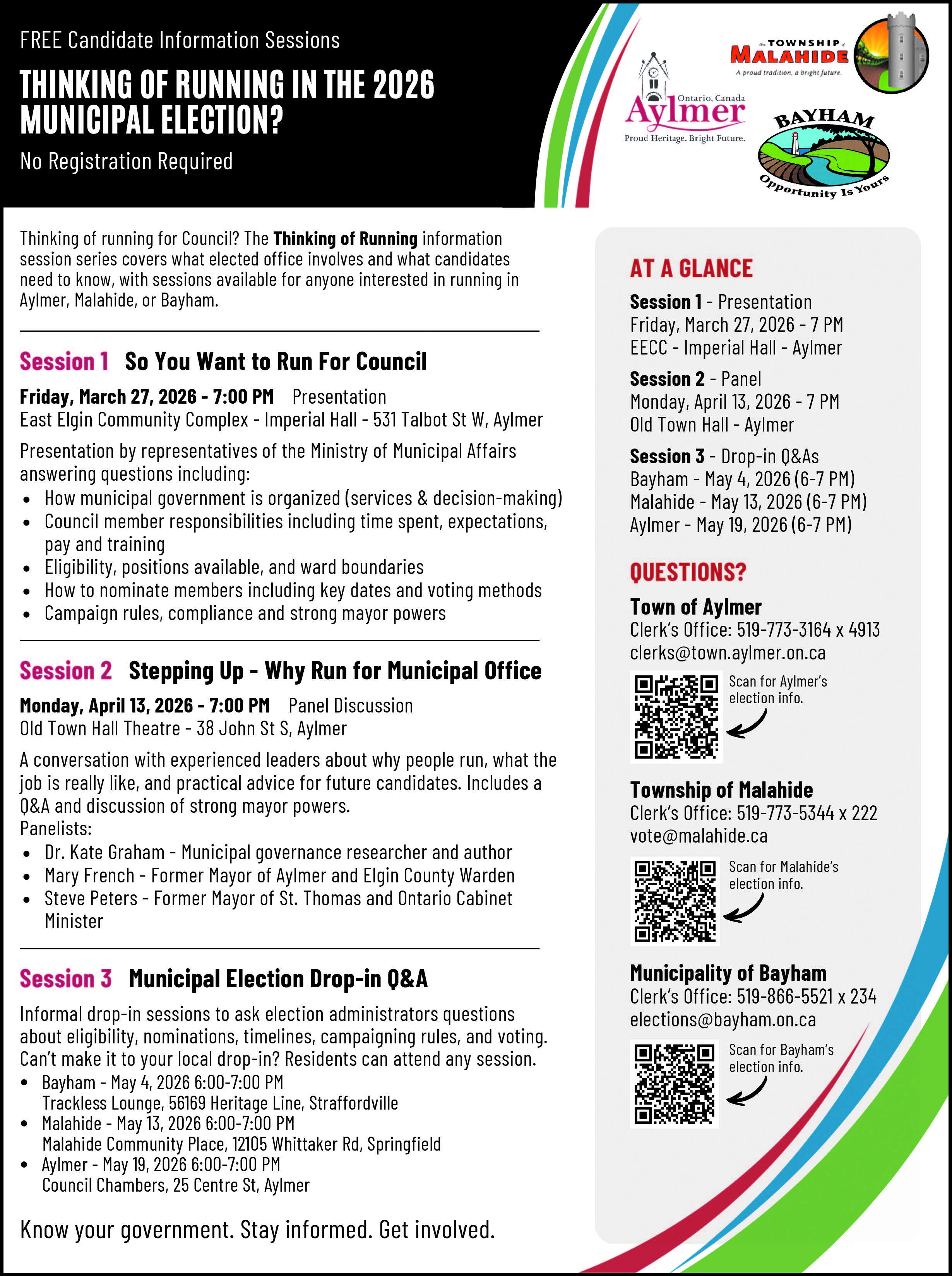 ✔ Open to anyone considering running in Aylmer, Malahide, or Bayham